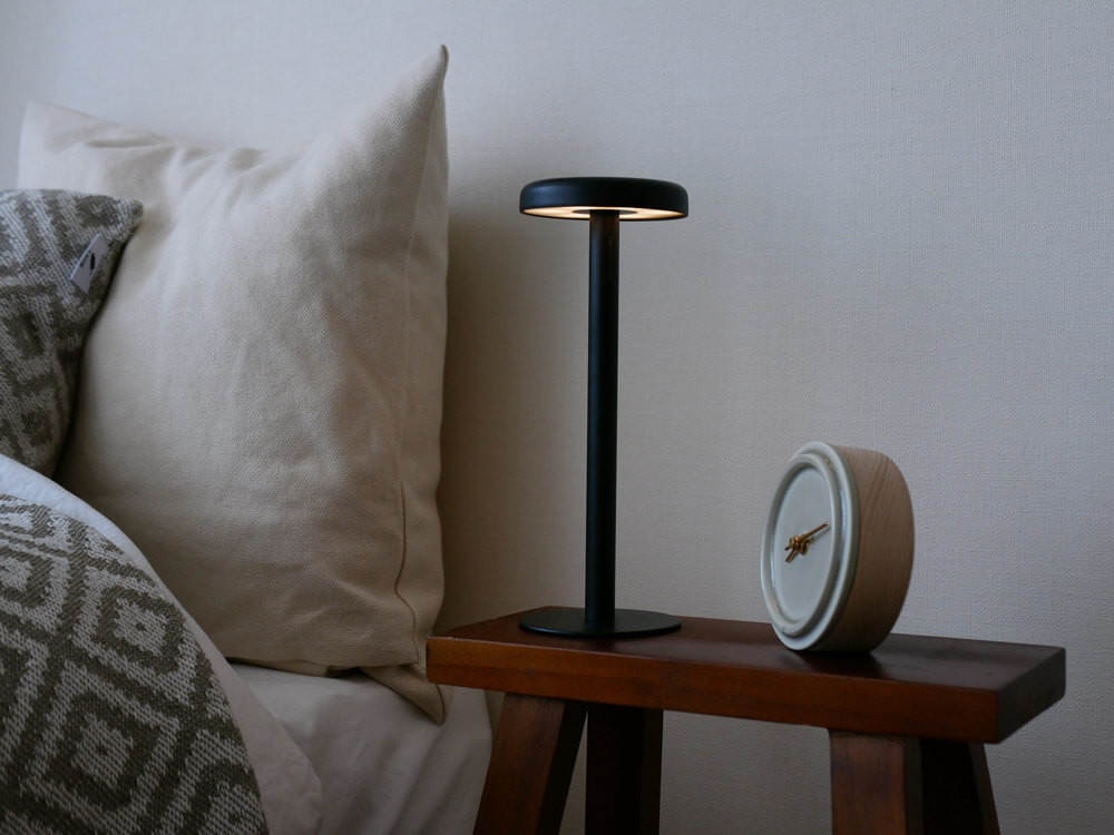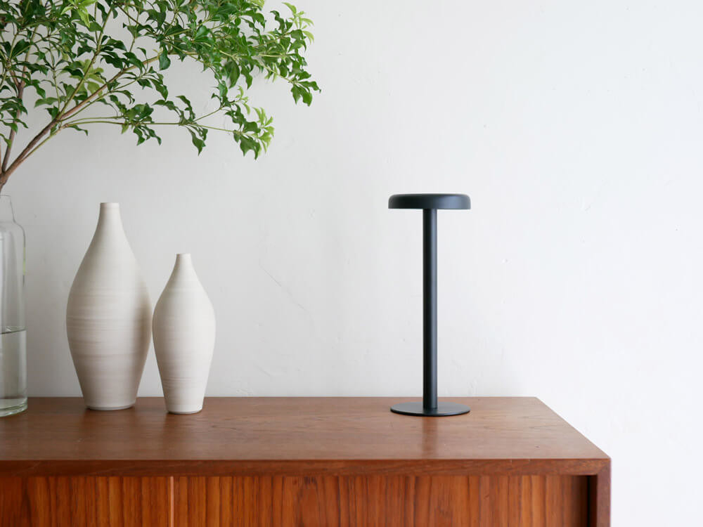 くつろぎや食事だけでなく、勉強や仕事などの様々な作業場所として使われるリビングに。時には寝室。そしてたまにバルコニーなど、気軽に持ち運べる照明があると便利です。