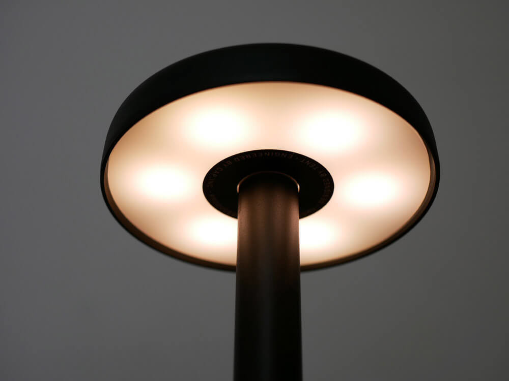 スイッチにもなる傘部分を押してから、ちょうど1時間後にフワッと明かりが消えるタイマーを搭載。