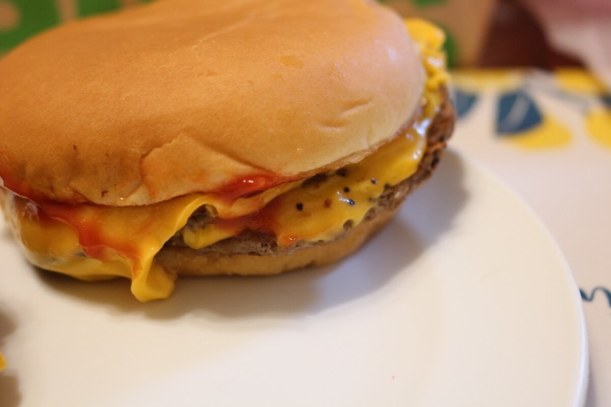 チーズと100%ビーフパティ2枚入ったボリューミーなハンバーガー。 バリューセットなら、90円引きで注文できます!