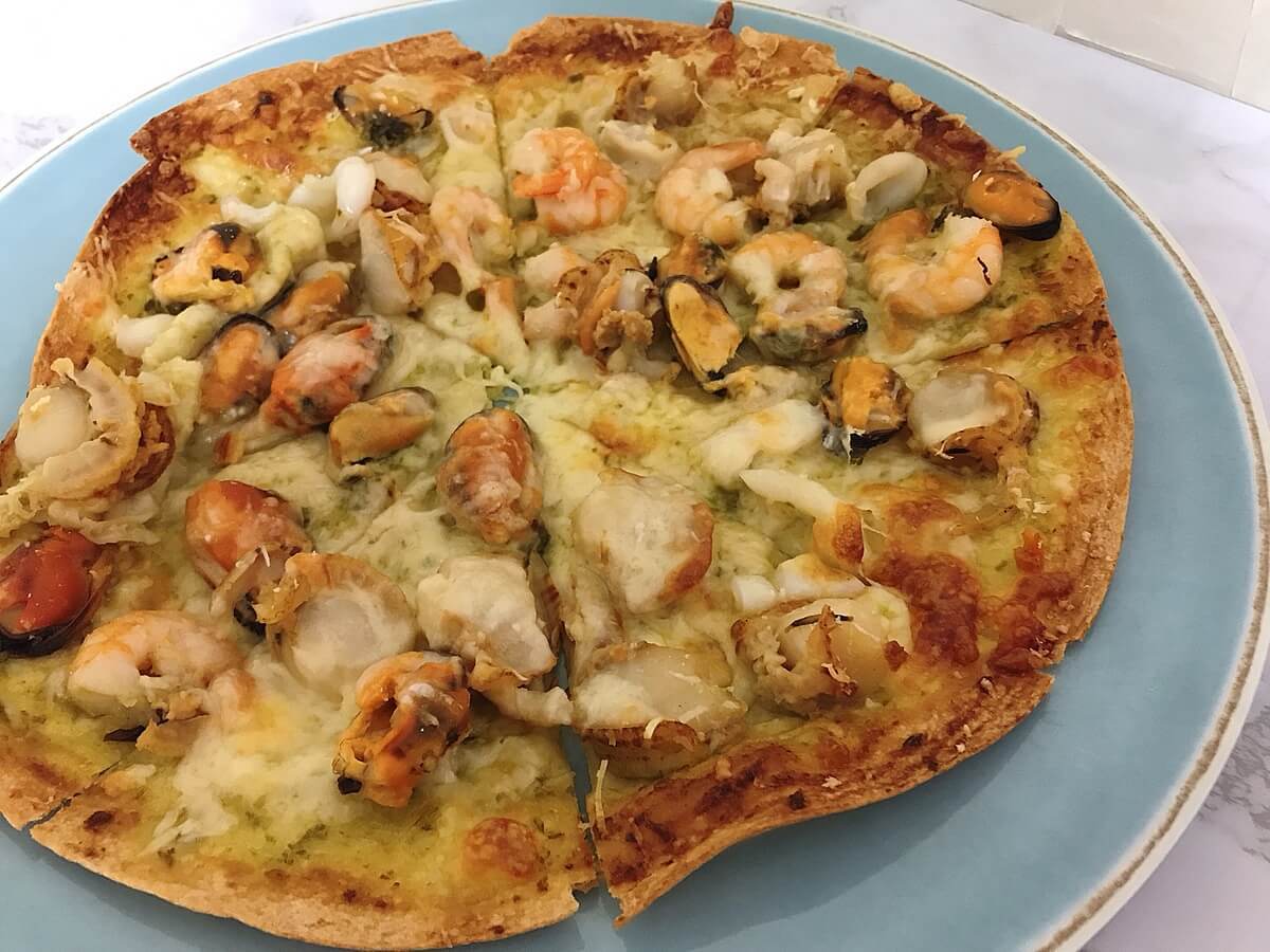 ピザソースを塗って200度のオーブンで15分程度焼けば、美味しいピザに仕上がります。