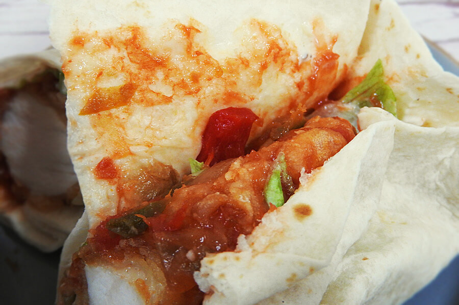 トルティーヤの中に入っているのは、カーネルクリスピーと野菜、トマトベースのピリ辛ピカンテサルサ、ペッパー風味のマヨネーズ。