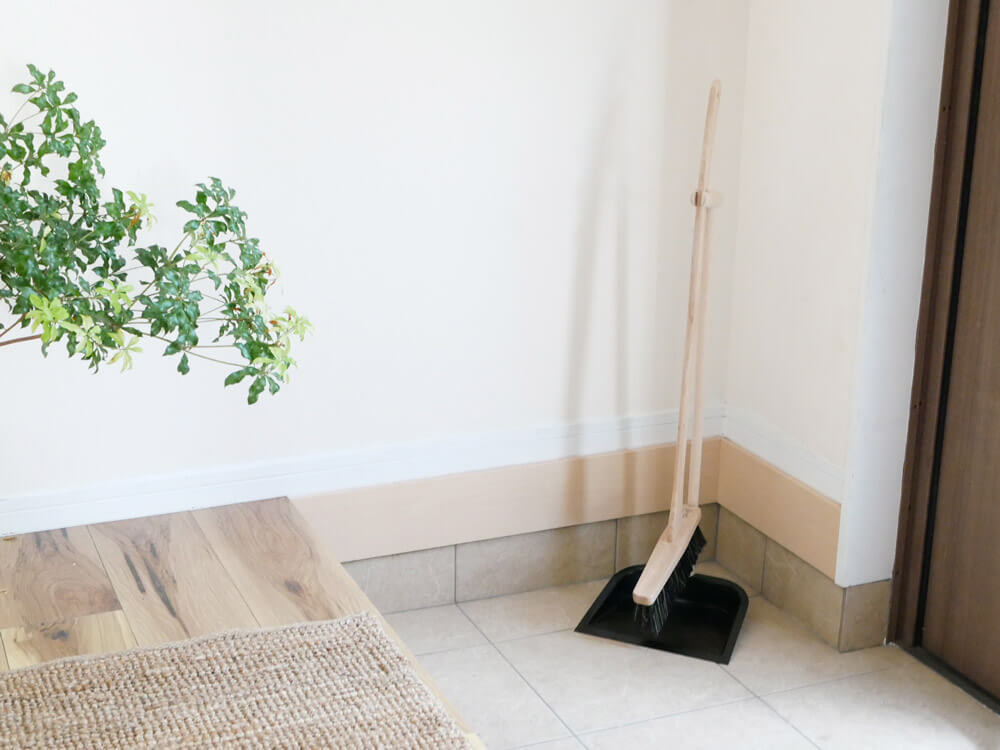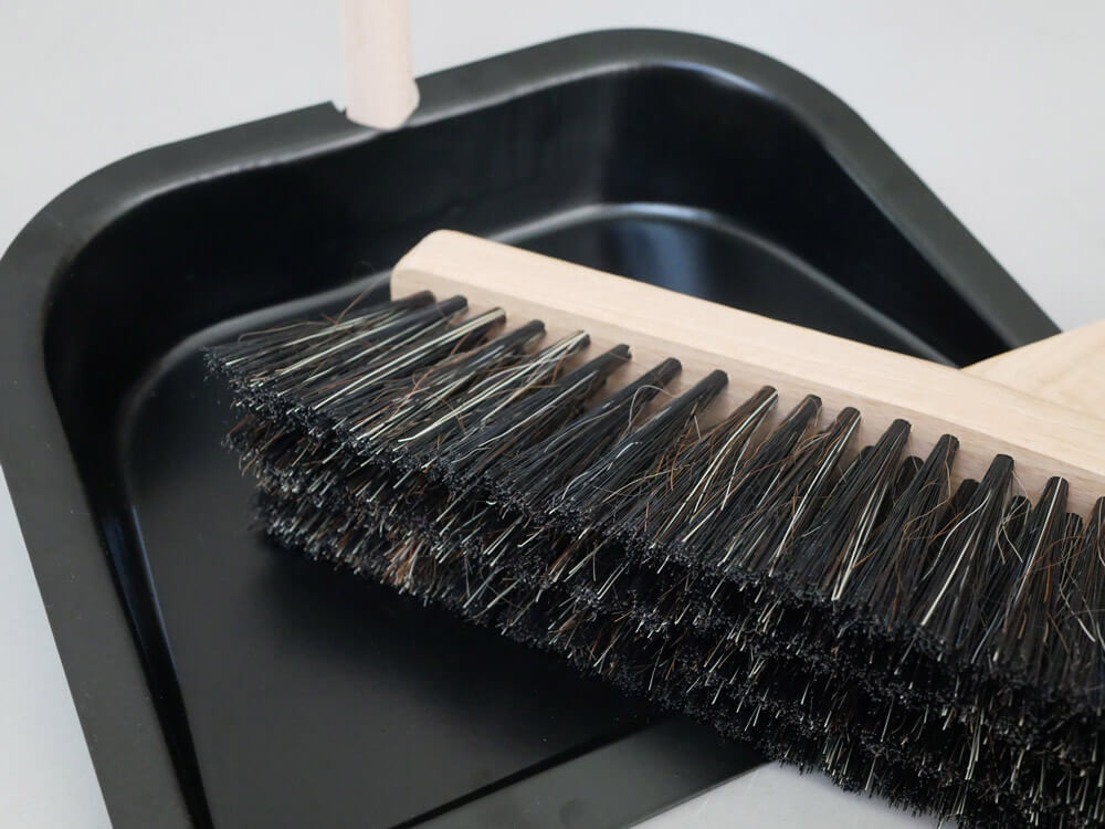 ほうきのブラシは馬毛混でやわらかく、ほどよいしなり具合で細かいゴミや埃などもキャッチ。硬すぎずしなやかなので床を傷つける心配もありません。
