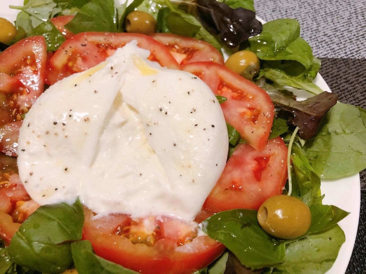 手のひらサイズのチーズはタプタプした手触り。ナイフを入れると、中から生クリームとモッツァレラチーズがトロ~リと溢れてきて、思わず一人で歓声をあげてしまいました。