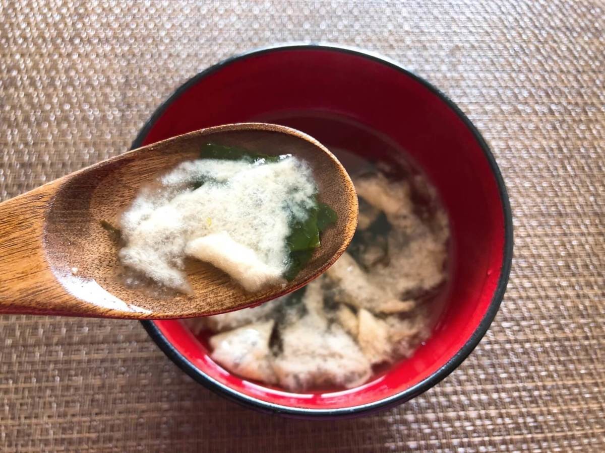 正直なところ、のど黒は高級魚なので、ほんのすこーし入れたくらいだと思っていたのに、かなりしっかりのど黒のお出汁が効いていてびっくり!天然わかめも美味しい……。