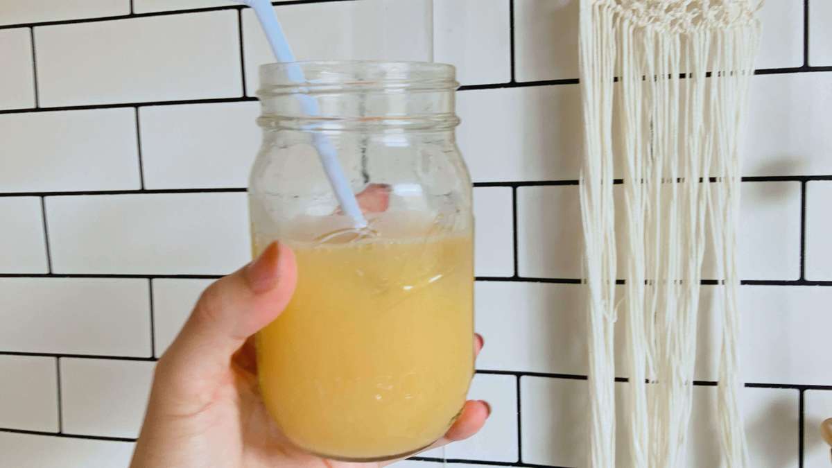 コップに注いでみるとこんな感じ色味で、お店で飲むのに比べるとちょっと薄い気がしました。飲んでみると見かけとは裏腹にしっかりパッションフルーツの味がして、お店で飲む物にも引けを取らないおいしさ!凍らせてスムージーにしたり、タピオカなどと合わせて飲んでもとても美味しそうです。