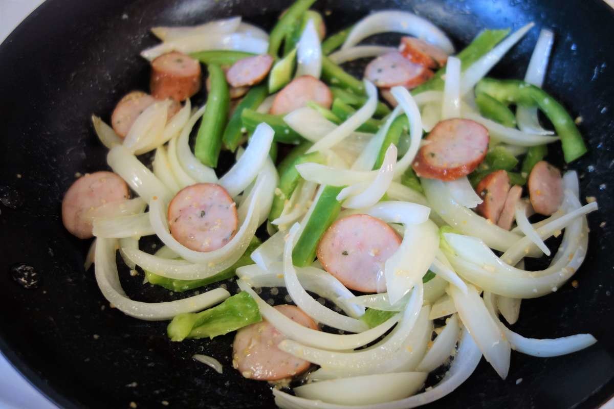 今回は、ピーマン・玉ねぎ・ソーセージを使用しました。