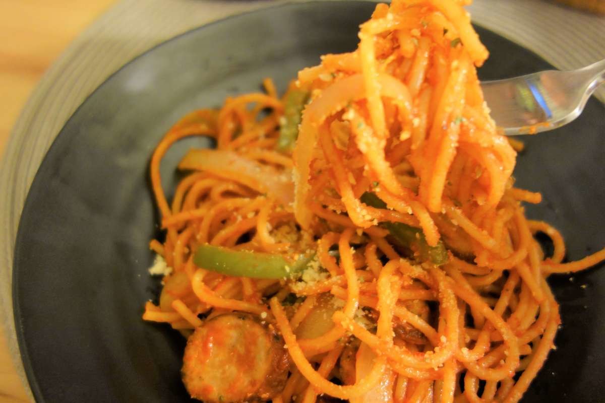 いつも作るナポリタンとあまり変わらない見栄えです。