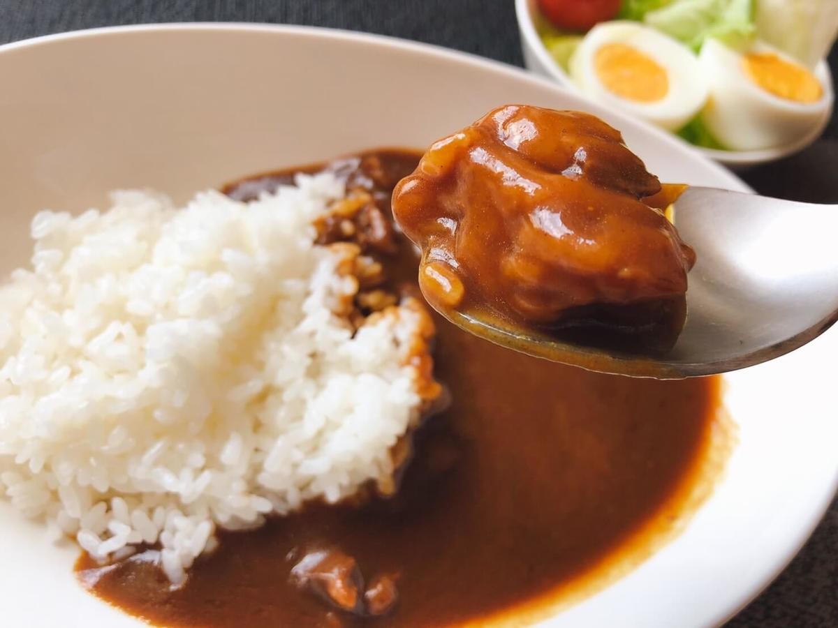 かなり大きなお肉の塊がゴロゴロ入っています!しかも、口の中でホロホロ解けるほど柔らかい。レトルトカレーに入っているお肉とは思えないほど、噛めば噛むほど旨味が出てきます。カレー自体にもしっかりビーフの旨味が滲み出ています。