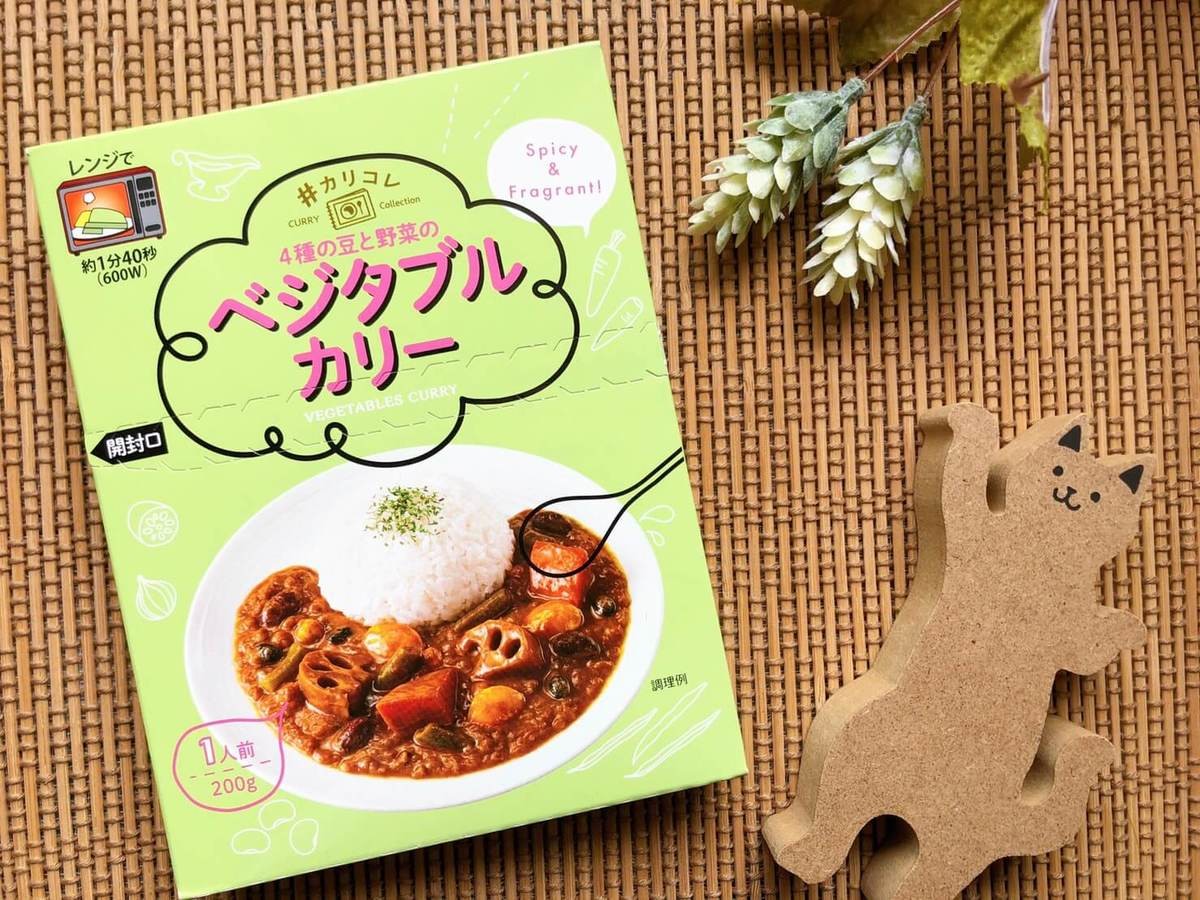 こちらは箱入りバージョンの"ベジタブルカリー(307円税込)"。4種の豆と野菜のカレーです。