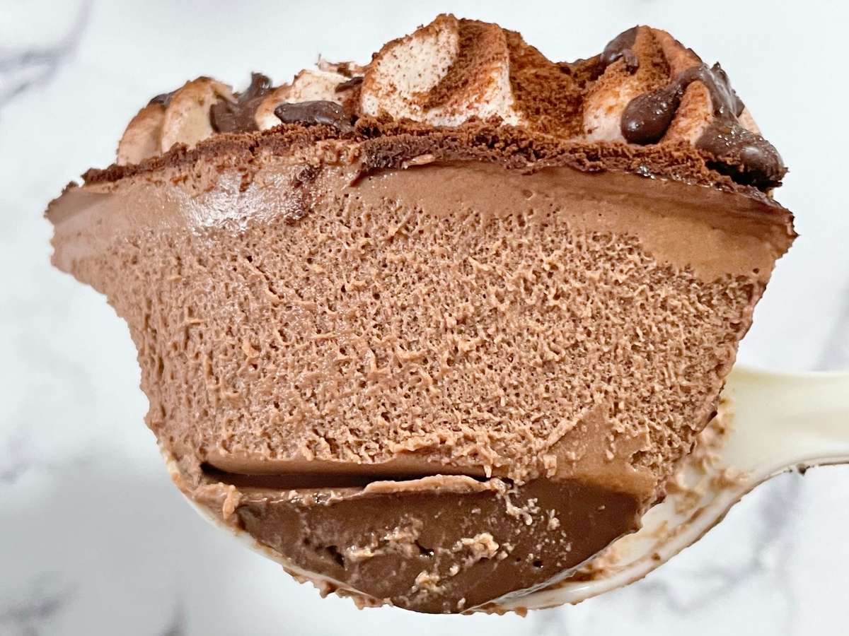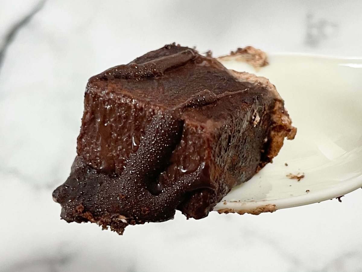 スプーンで下からすくってみると、チョコプリンの食感はプルンとしていて、ゼリーに似ています。