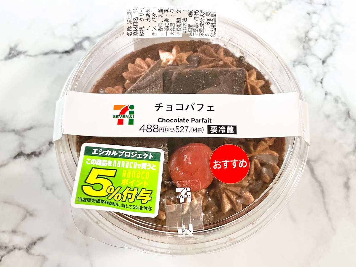 セブンイレブンへ新商品を買いに行くと、スイーツコーナーで見つけたのは、ひと際目立っていた「チョコパフェ」。