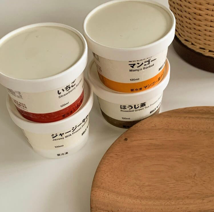@n_moom7さんがおすすめしているのは、無印良品の新商品4シリーズ「素材を生かしたアイスソルべ」税込290円。