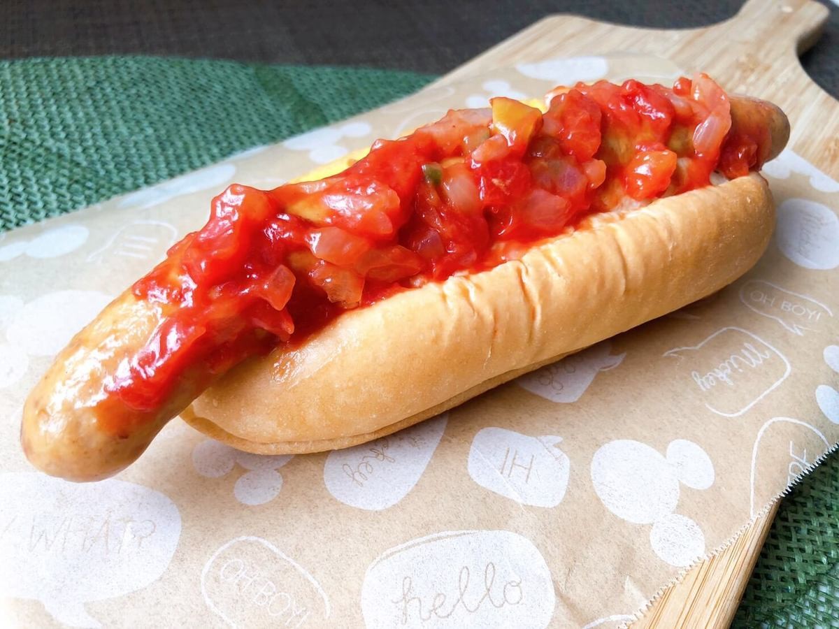 最初のGOOODOGが発売されて1年ちょっと。これまでさまざまな味がデビューしましたが、今回ジョブチューンで紹介されたのは、新発売の「トマトオニオン〜ハラペーニョ入り〜(298円税込)」。