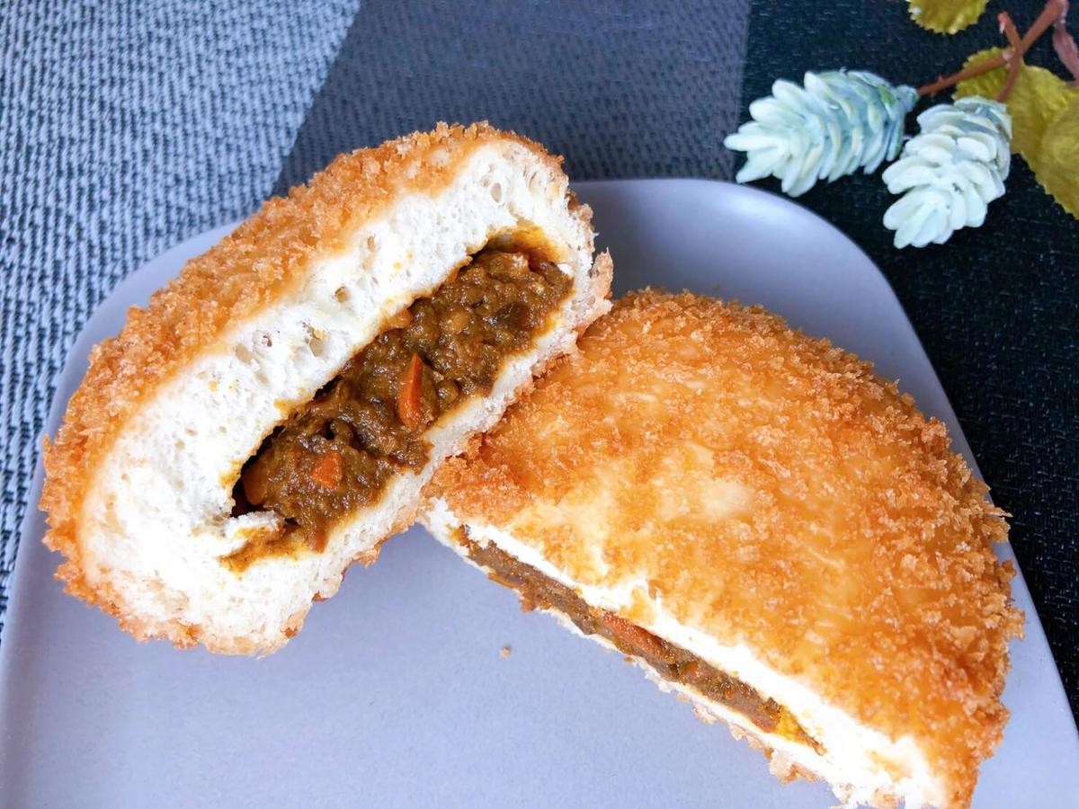 食べてびっくり!パン屋さんの出来立てほやほやカレーパンのカリッカリ食感とまではいきませんが、期待以上にサックリしています。揚げて時間が経っているはずなのに、中はもっちり外はサクサク状態をキープできるなんて不思議!