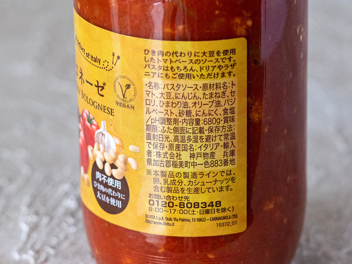 大豆や野菜もたっぷり使われていることから、ひき肉を使った一般的なボロネーゼソースよりもカロリーが低くなっているようです。