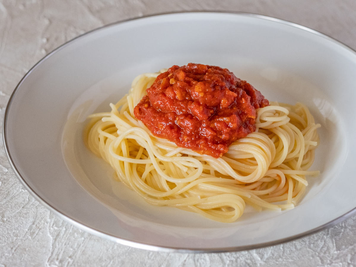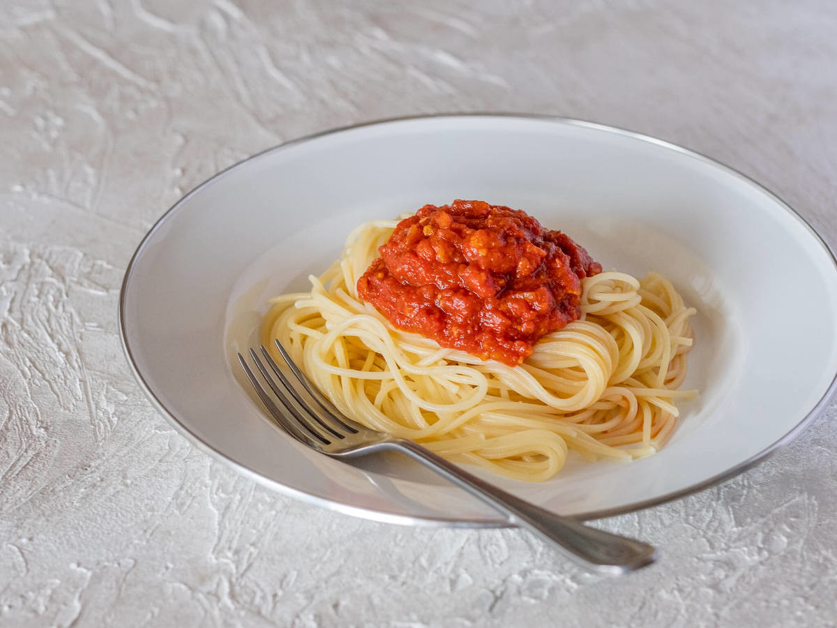 ぱっと見ではひき肉を使っていないようには見えず、いつも食べているボロネーゼとの違いはそれほど感じません。