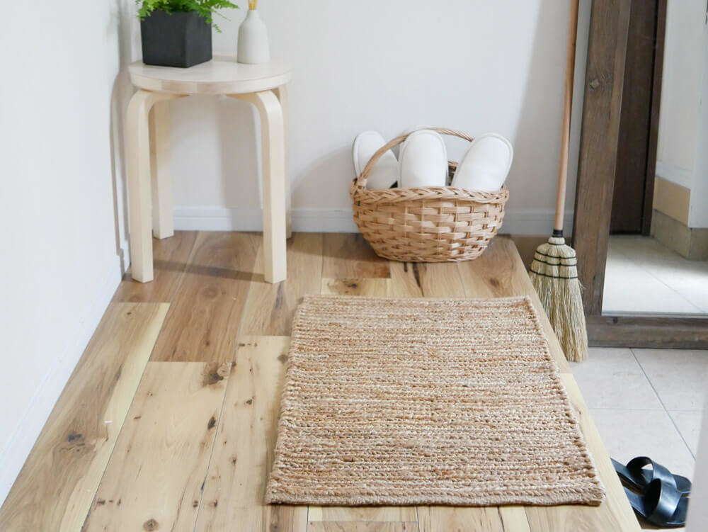 靴を脱いだ瞬間、一番最初に足裏に触れる玄関マット。 サンダルを脱いだ素足に、天然素材の質感がとても心地よく、靴を揃えるのも忘れちゃいそう(笑)