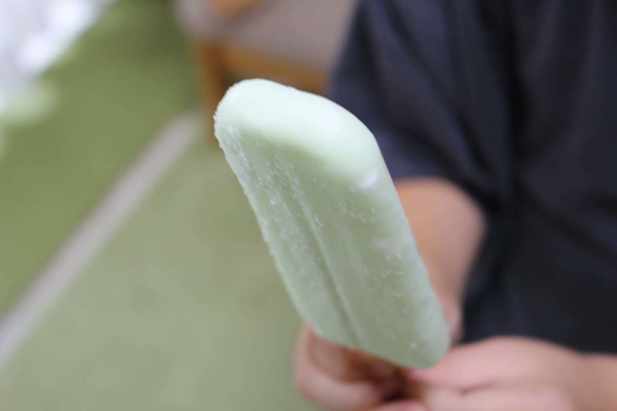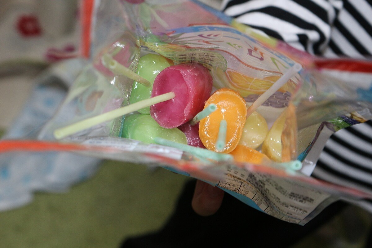 大人から見ると、物足りないサイズで1本約25円感はありますが、子どもたちには見慣れないふにゃふにゃ棒に興味津々。子どもたちが早く食べないと、アイスが溶けて棒から落ちそうでヒヤヒヤします(アイスだけに)……。