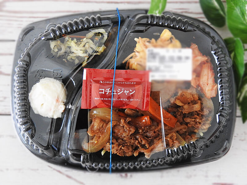 自宅にごはんがありましたので、ほっともっと「カルビ焼肉おかずのみ」460円(税込)を注文。ワンコイン以下なのがいいですね。別添でコチュジャンもついてきましたよ。ふたのスキマからカルビ焼肉の良い香りがもれてきて、食欲をそそります。