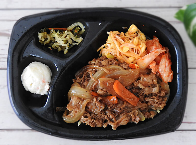 容器の形状のせいか大盛り感は出ていませんが、手に持った時の重さが「カルビ焼肉おかずのみ」よりもずしんときましたよ。