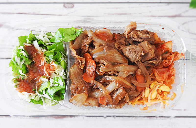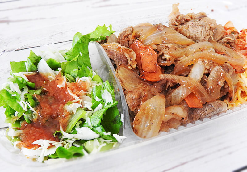 つづいては、ほっともっと「プラスサラダWカルビ焼肉おかずのみ」の紹介です。