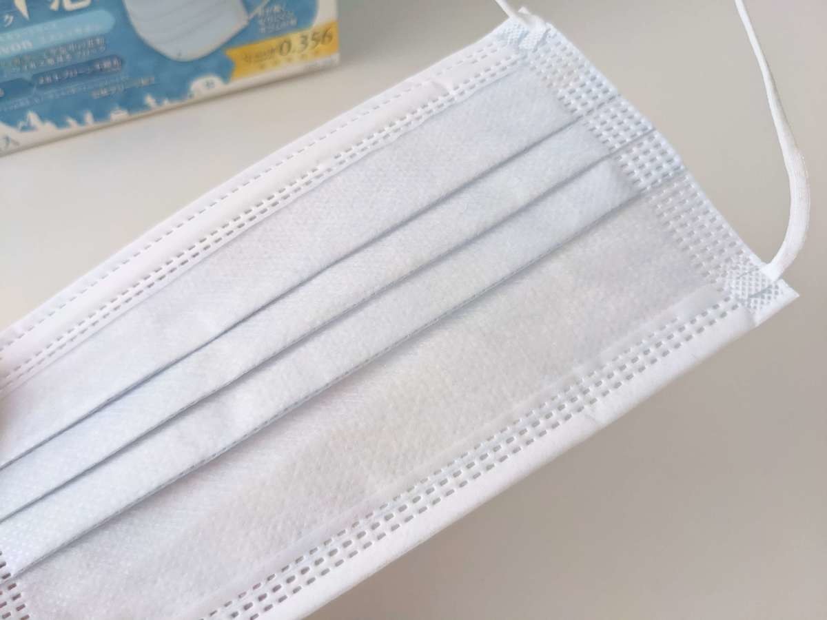 シャリッとした肌触りで、暑さによるベタつきも軽減してくれそうです。 血色マスクと同様、平ゴムのため耳が痛くなることもないですし、マスク自体のつくりには特に問題ありません。