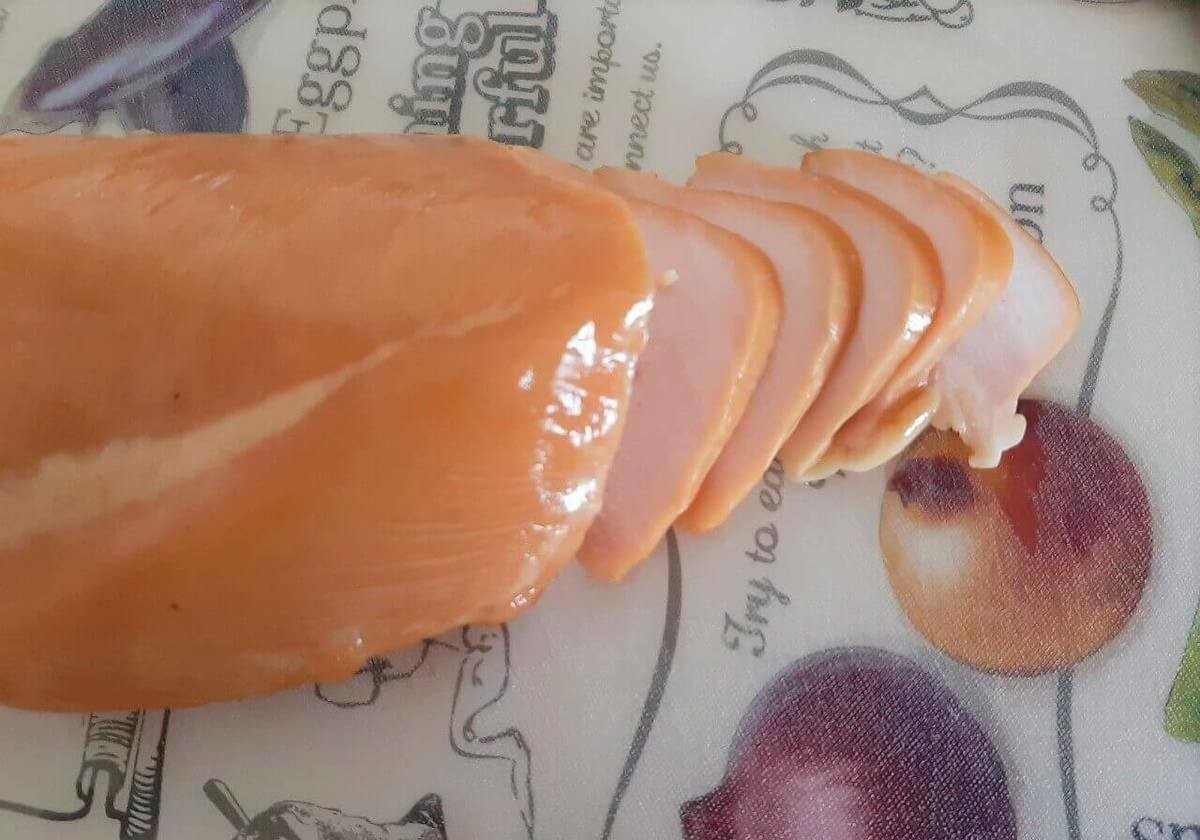 パッケージに「そのまま食べてください」とあったので、とりあえずスライスして食べてみることに。