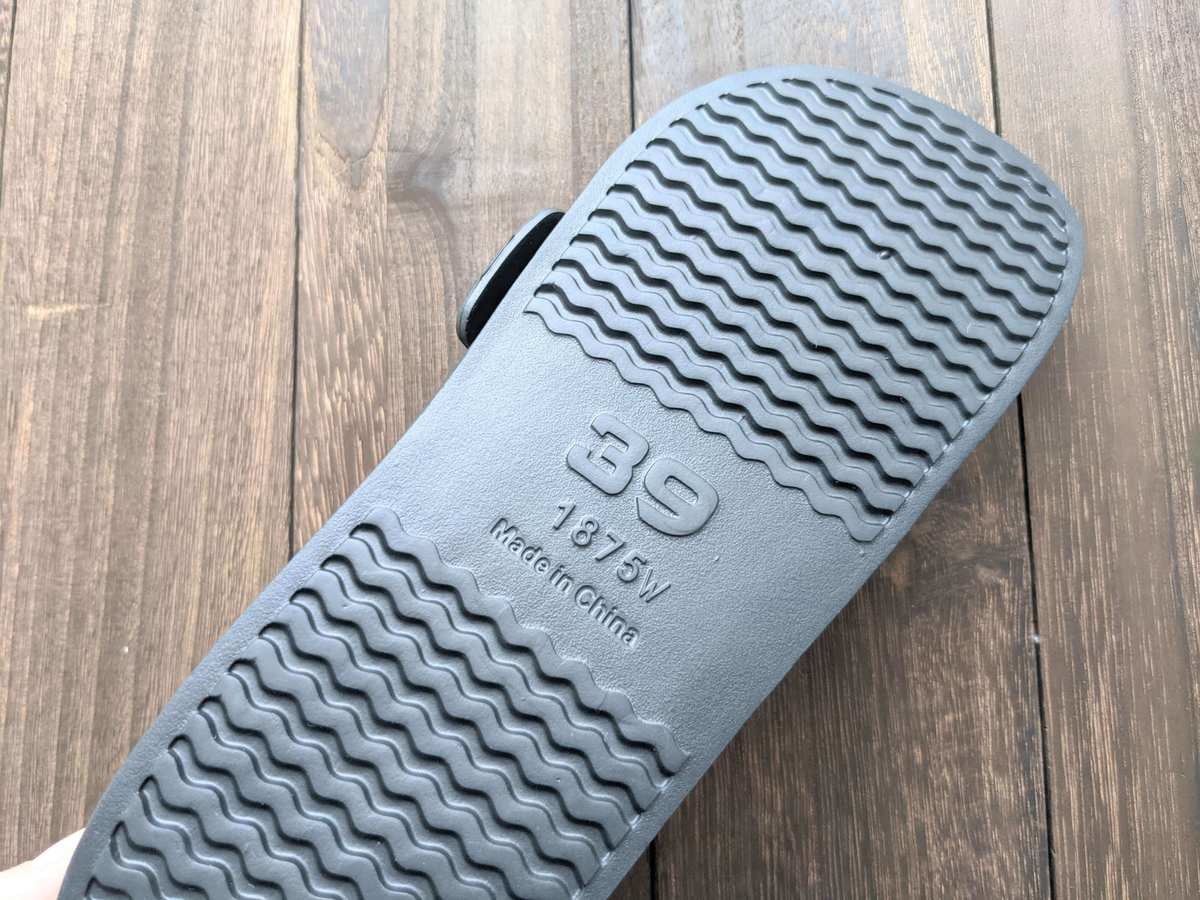 サンダルの底面はこのような感じです。 ほどよく厚みがあるので、フラットタイプでも疲れにくいと思います。