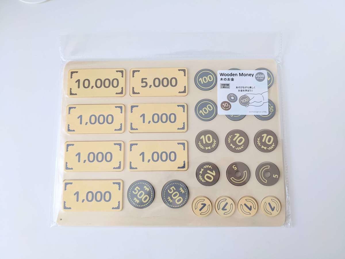 スリーコインズのキッズアイテムは、インテリアを損ねない落ち着いた色味や、シンプルなデザインでママたちにも好評です。 こちらの木のお金は、遊びながらお金の勉強もできるのでおすすめ! ぜひお店やネットショップをチェックしてみてくださいね。