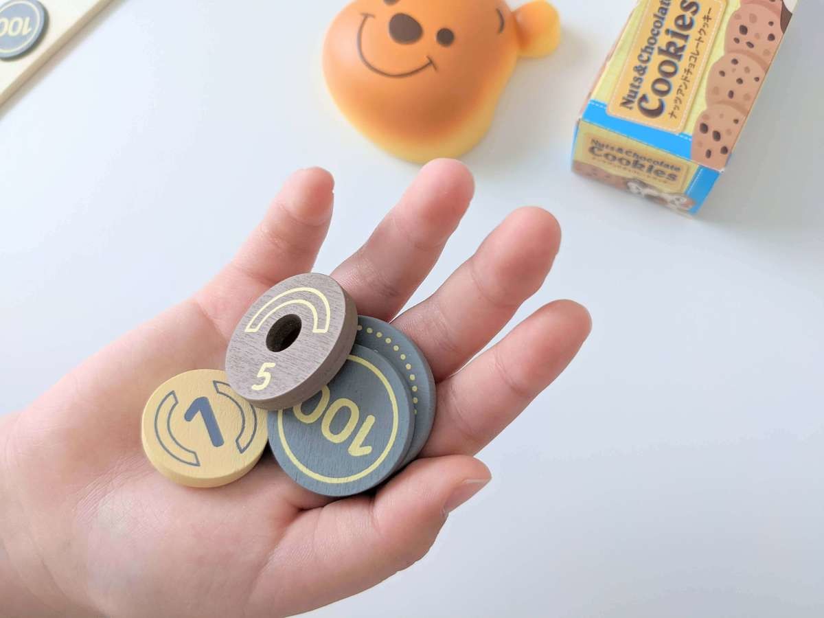 ぴったりのお金を渡すと面白くないようで、あえておつりが出るようにするのが我が家のルール。 今までもお金のおもちゃで遊んだことはありますが、木ならではの質感や厚みが面白いようですね。