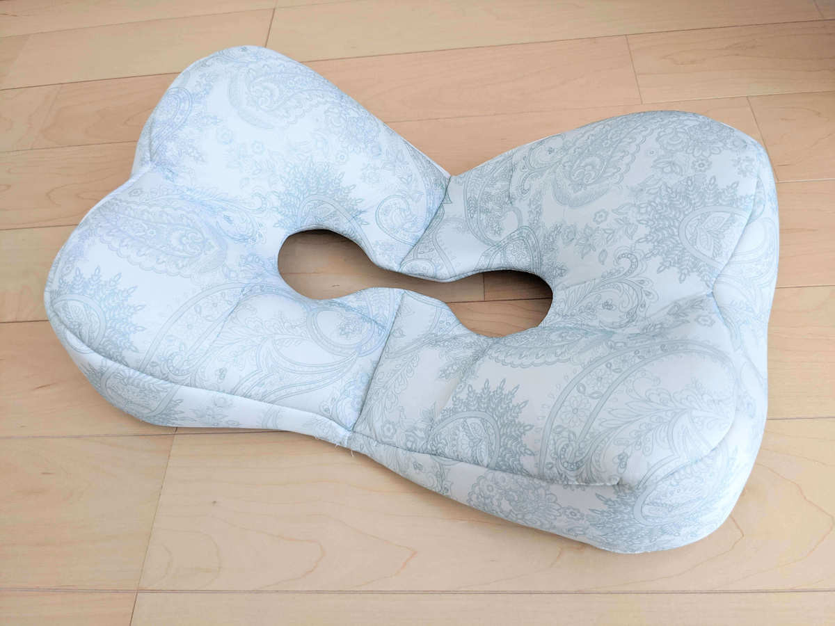 サイズは約43×30cm。 V字型でゆるやかな傾斜があるため、負担が一カ所に集中せず座りやすいです。