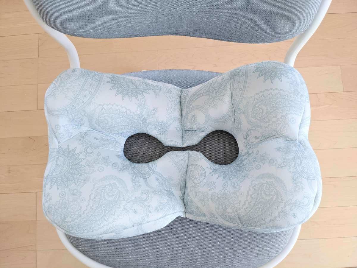 お手持ちの椅子にマルチクッションを乗せるだけで、座り心地が格段に良くなります。 V字型になっているので、座ると骨盤がキュッと締まる感じも!