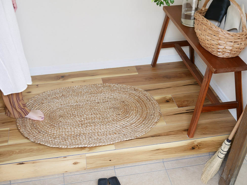 靴を脱いだ瞬間、一番最初に足裏に触れる玄関マット。 サンダルを脱いだ素足に、天然素材の質感がとても心地よく、靴を揃えるのも忘れちゃいそう(笑)
