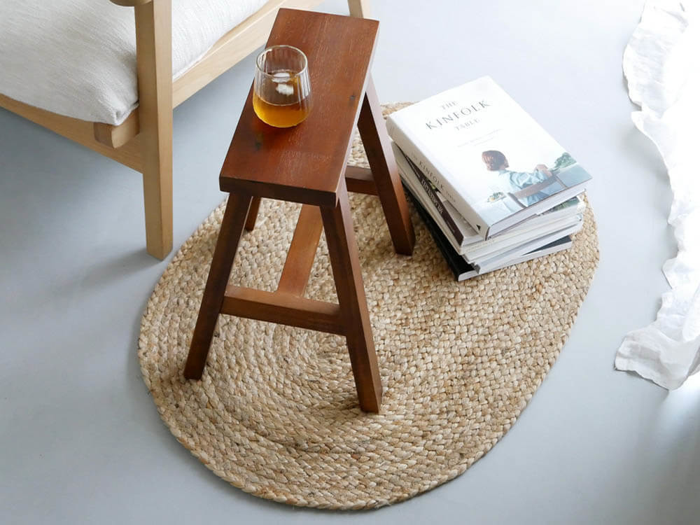 素足を乗せたくなるナチュラルな風合いは、気持ちも軽やかに。そして、シンプルなデザインはどんな家具にも合うから安心して取り入れられますよ。