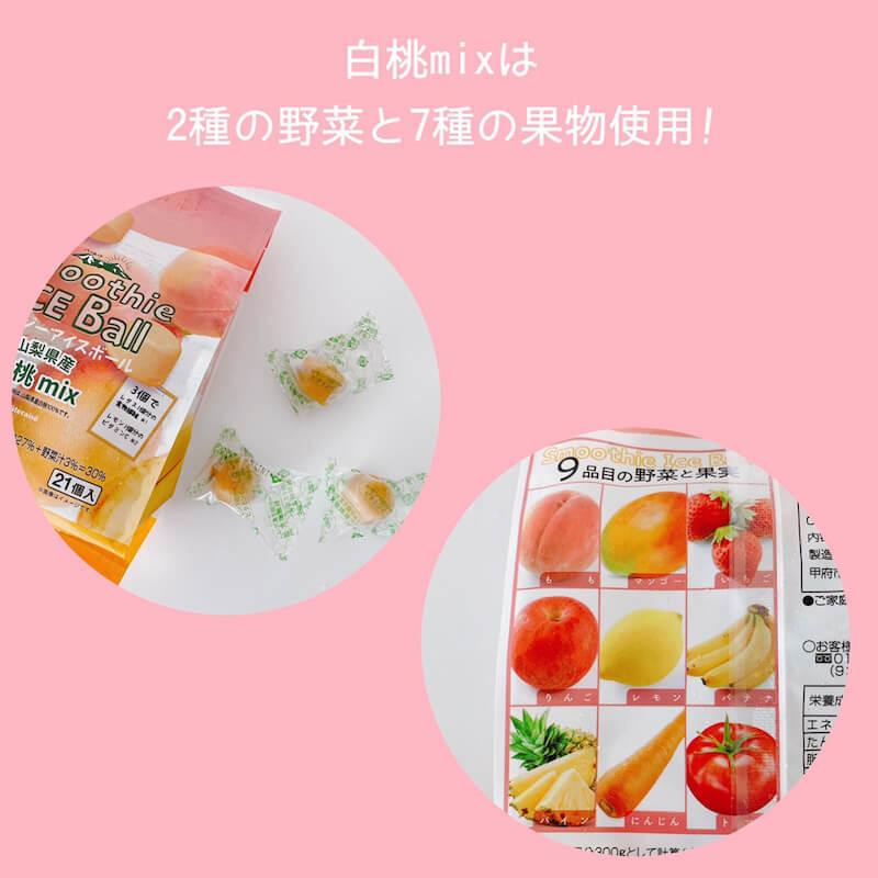 21個入り 税込 302円デザートアイス スムージーアイスボール 八ヶ岳周辺で採れた野菜と果実mix