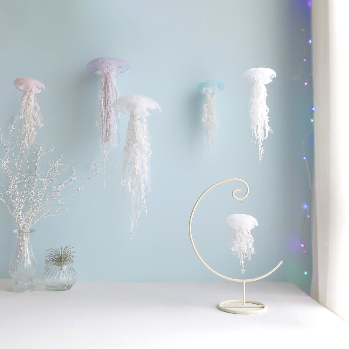 最後にご紹介するのは、ふわふわと揺らぐオーガンジから生まれたクラゲのモビールです。