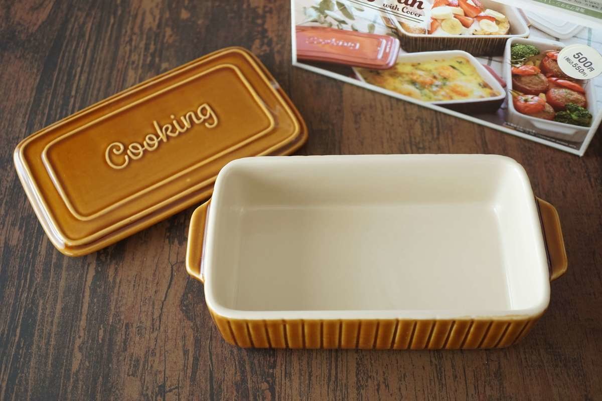 こちらは蓋つきの耐熱皿で、カラーはブラウン・レッド・クリームの3種類。