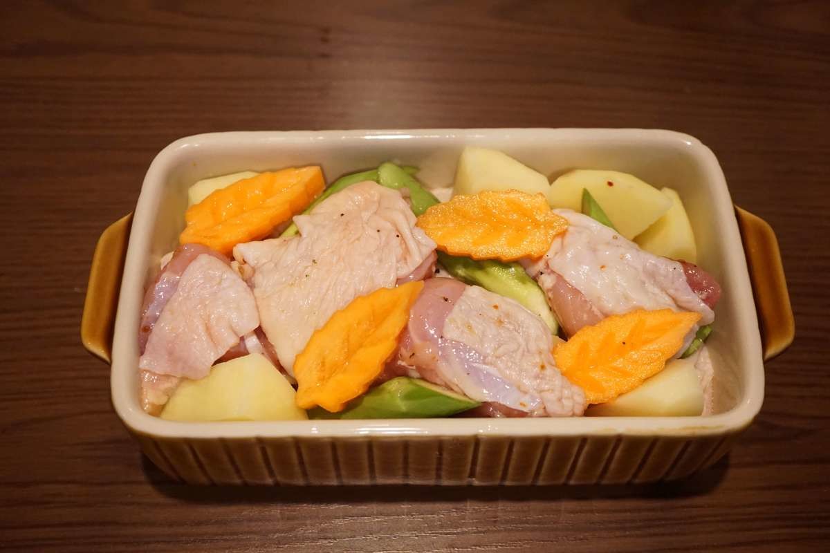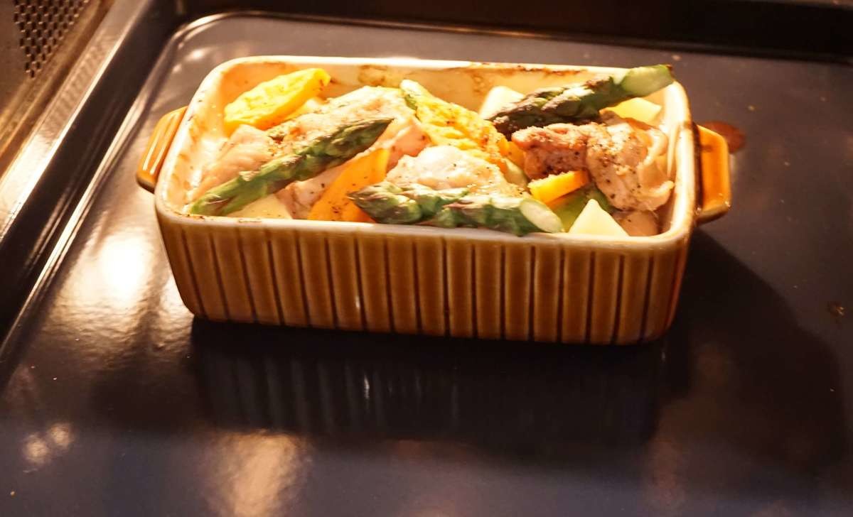 ⑤食材を全て入れたら蓋をし、オーブンに入れます。