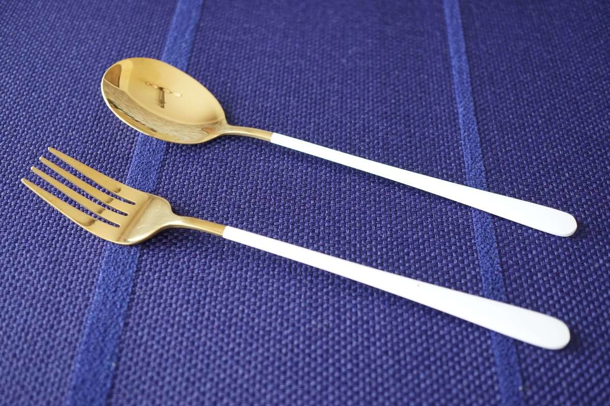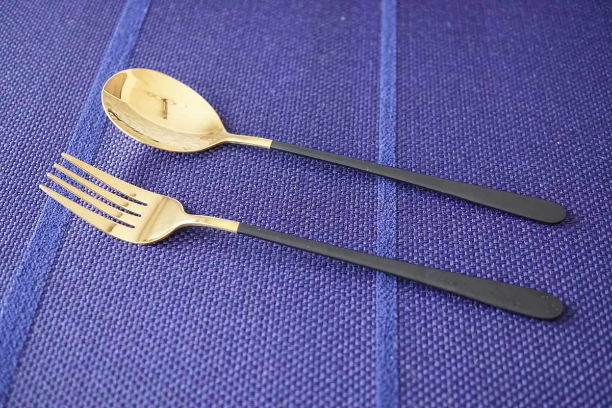 私は黒が一番お気に入りで、黒のカトラリーを使用すると全体が締まり、モダンな雰囲気になります。