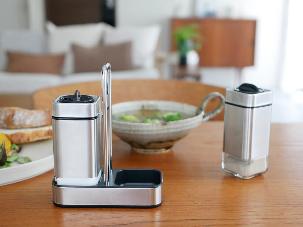 そんな、生活が楽しくなるアイテムを日々発信してくれるDULTONから、ステンレスを全面に取り入れた調味料入れが新発売!
