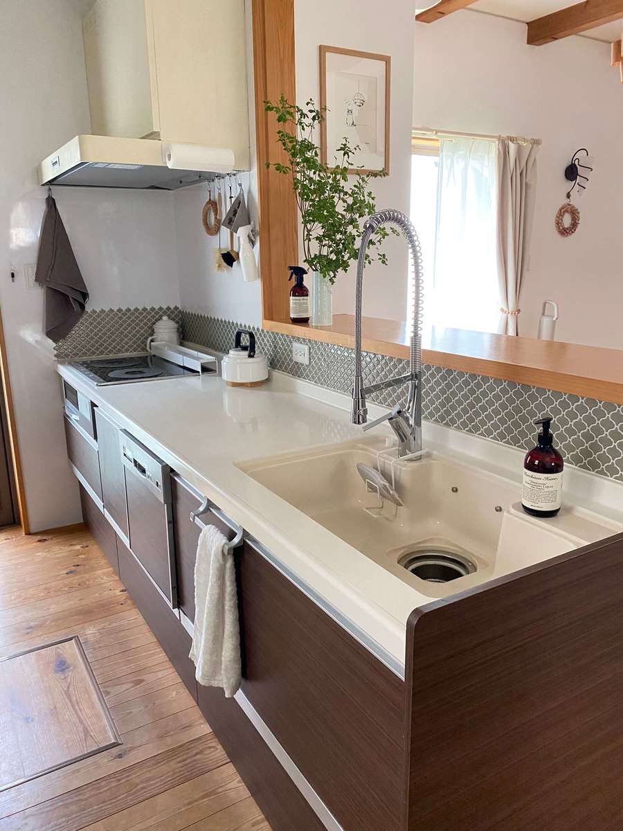 日々スッキリ見えるように頑張っているところです(まだまだ物が多いですが……)。我が家のキッチンに元々付いていた収納はキッチン周りの引き出し収納のみ。