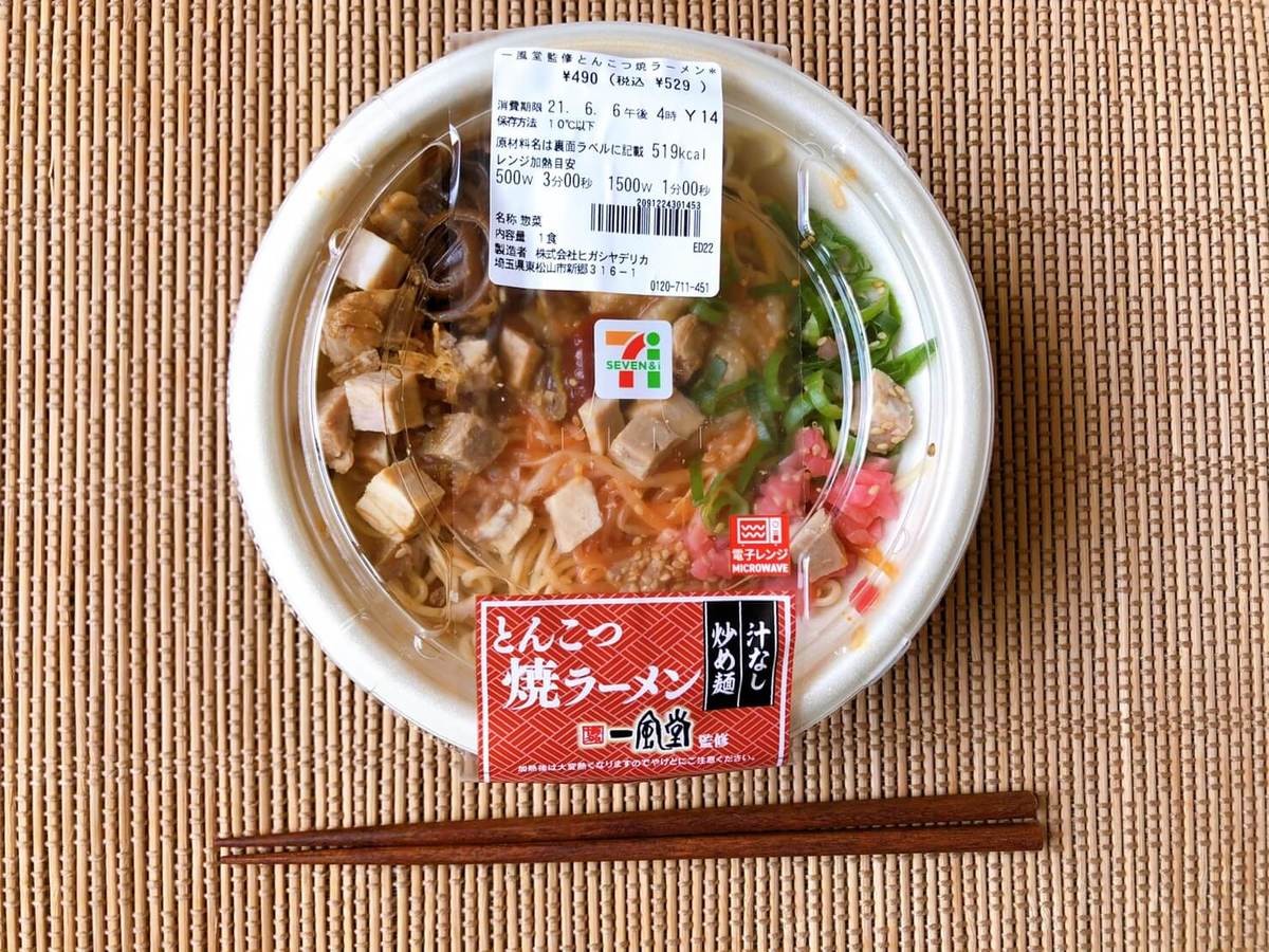 見つけた時は大興奮してしまい、迷うことなくカゴに入れたセブンイレブンの新商品"一風堂監修 とんこつ焼ラーメン(529円税込)"。