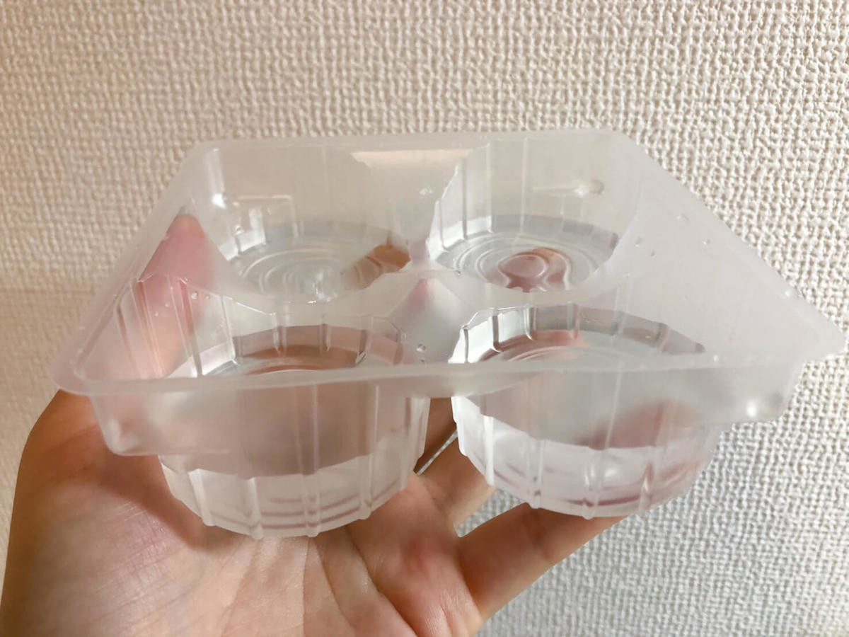 小籠包が入っていたプラスチック。このように、4つのくぼみ全てに水を注ぐとちょうど200ccになるように作られているのです!