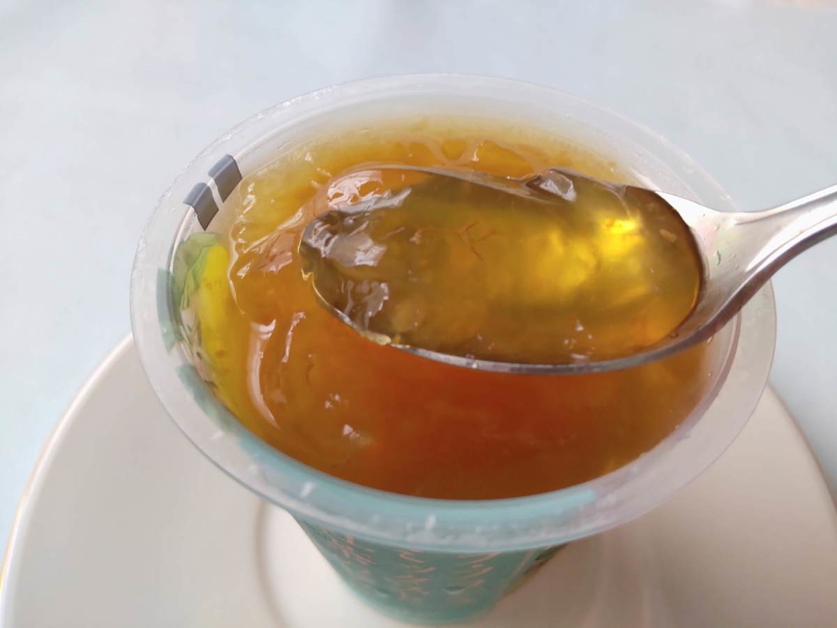 スプーンですくってみると、てろってろのジュレがこぼれ落ちそう!