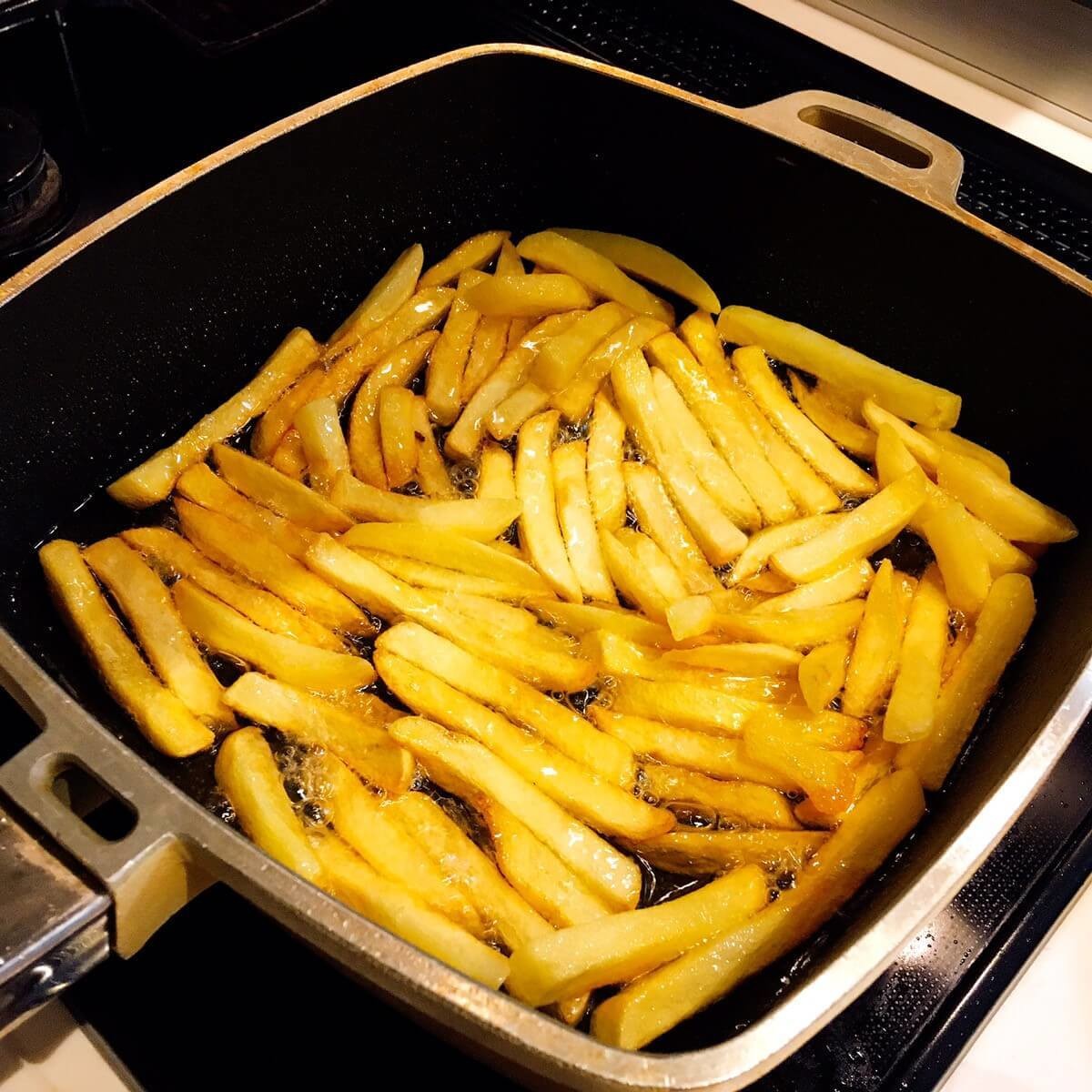 揚げ油の量が少ない場合は、カリカリになるように途中でポテトをひっくり返すのがコツです!
