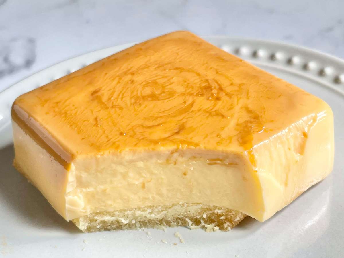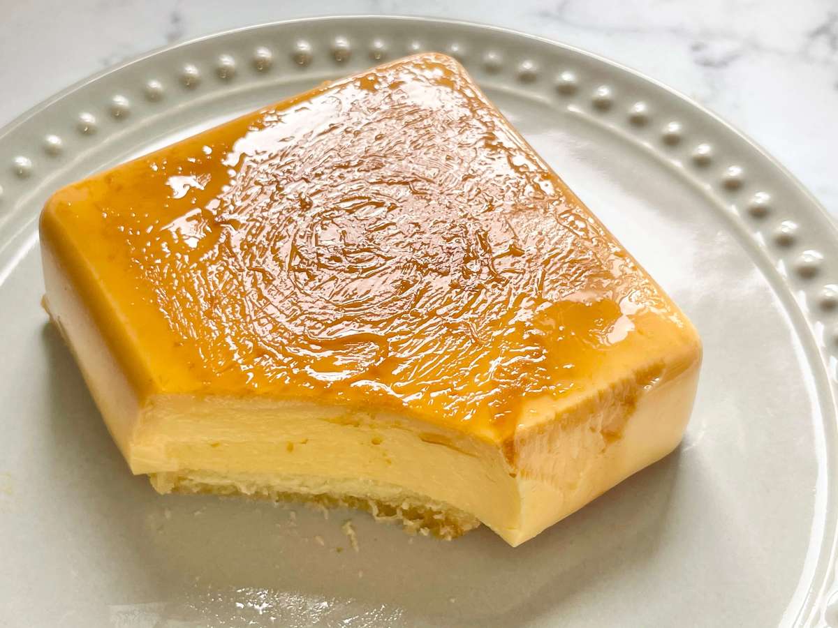 ほろ苦いカラメルソースが染み込んだスポンジ生地と、卵の濃厚なコクを味わえる、かため食感のプリンです。
