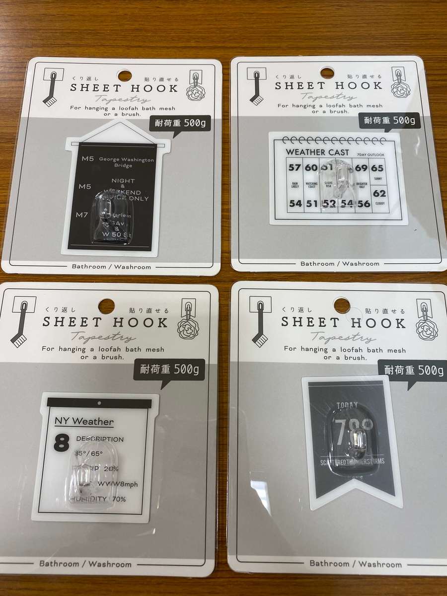 見た目もおしゃれなシートフック。 こちらも剥がることができます。耐荷重は500g。
