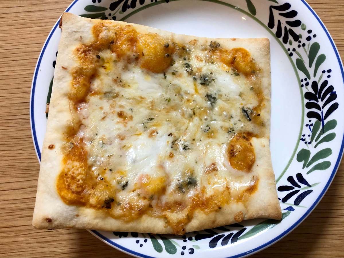 レンジで温めると、それぞれのチーズが混ざり、まるでコク深い新しいひとつのチーズになったようです。 パパは、「ゴルゴンゾーラチーズのクセがいい!」とお気に入り。生地が硬めなのも食べ応えがあっていいんだとか。