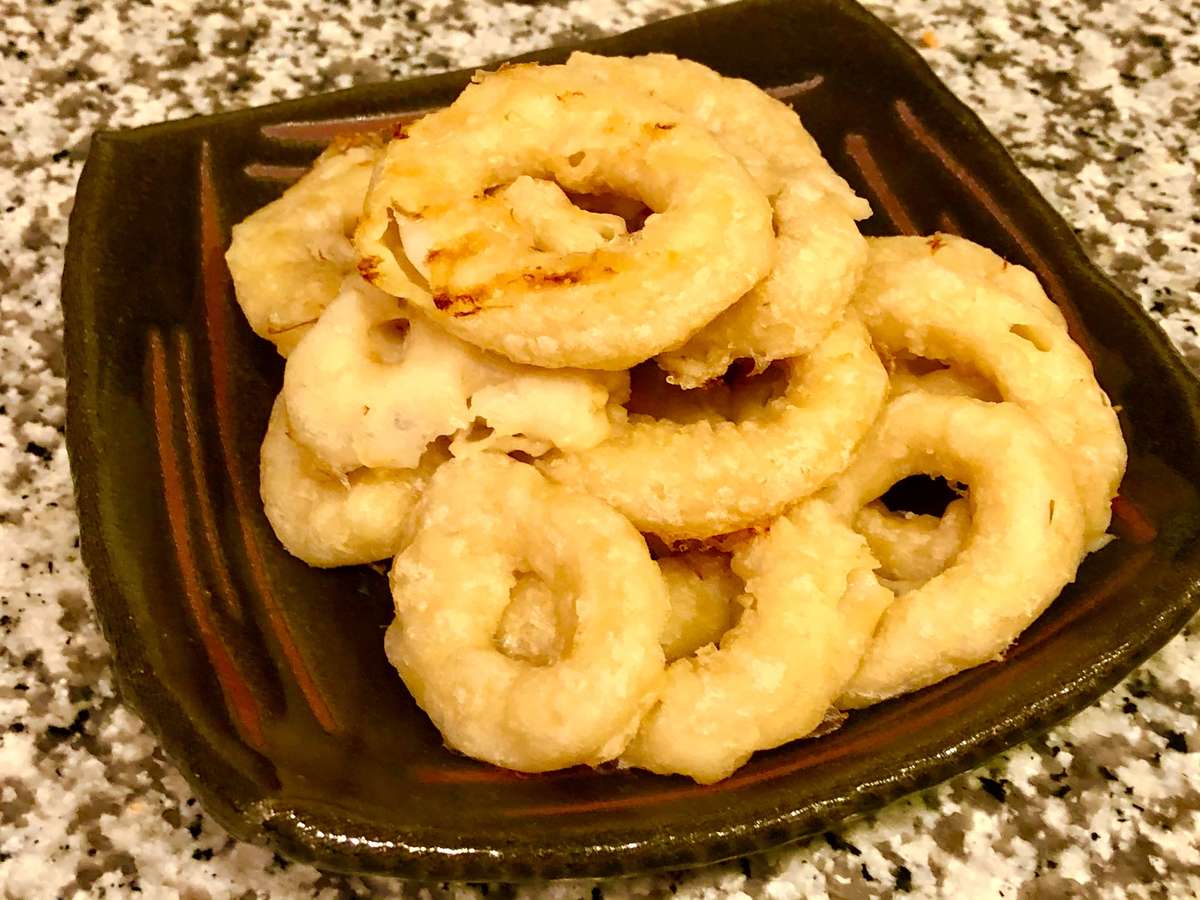 つづいてイカリングのご紹介です。 イカリングは、家で作るのはとても大変ですね! いかをさばくのも油ハネも怖いので、私はあまり作れません。