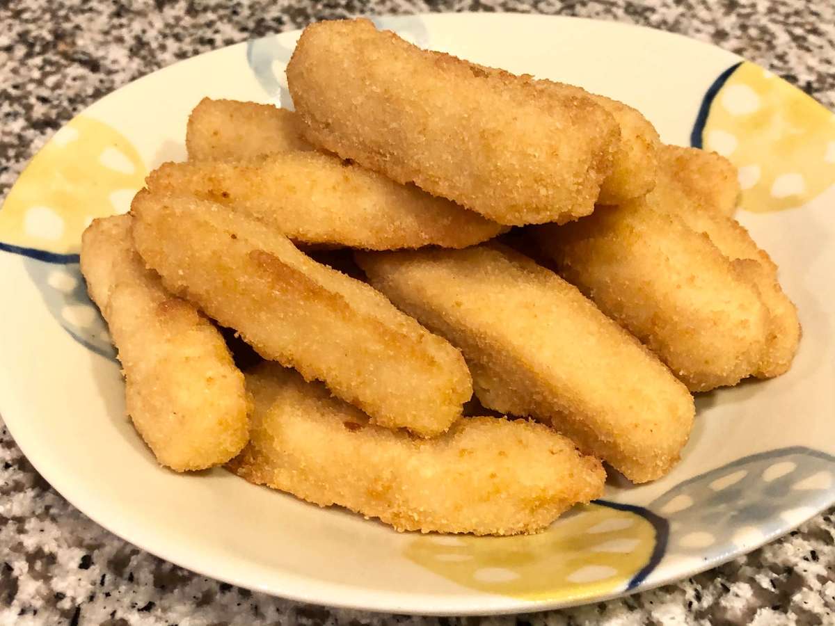 つづいて鶏むね肉をスティック状にして揚げた「チキンバトン」です。日本ではこの形は、ありそうでなかなか見ないかもしれません。食べるまでは、旦那も息子も警戒していました(笑)